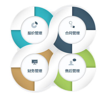 報(bào)價(jià)/合同/收款/售后服務(wù) 閉環(huán)管理 任何一個(gè)環(huán)節(jié)都不遺漏!歷次報(bào)價(jià)記錄 合同管理 合同簽訂 合同分類 合同查詢 合同收款 應(yīng)收款管理 財(cái)務(wù)管理 售后服務(wù) 售后跟進(jìn) 投訴受理